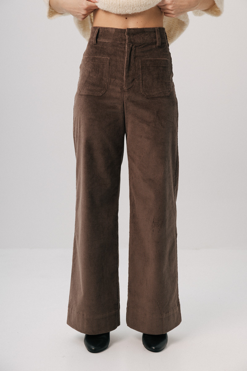 Sztruksowe spodnie Flare mocca